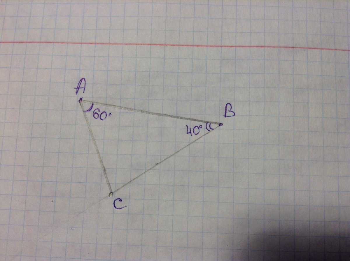 постройте треугольник ABC со стороной AB=5см, ABC=40°,BAC=60°