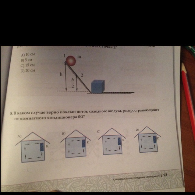 Правильный ответ - а. Так как холодный воздух всегда идет вниз, а горячий всегда наверху.