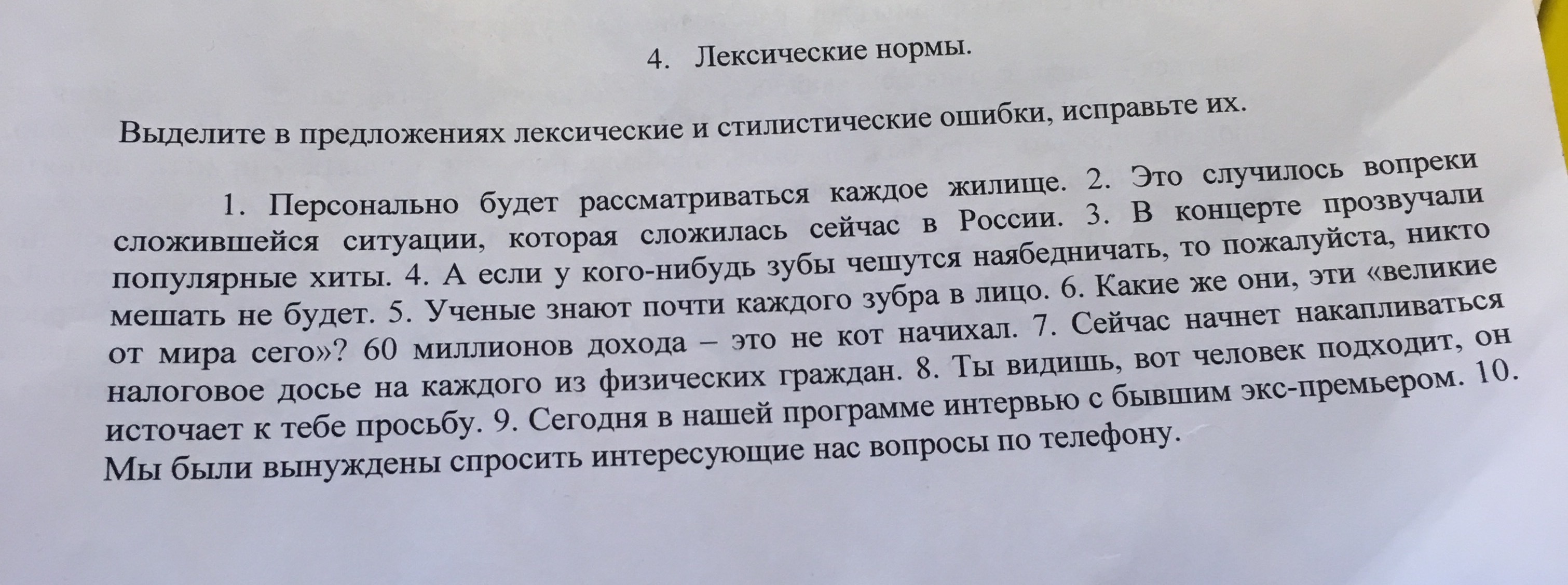 1. Каждое жилище будет рассматриваться персонально.2. Это случилось вопреки ситуации, которая сложилась в России. 3. Популярные хиты прозвучали на концерте. 4. никто мешать не будет, если у кого то зубы чешутся наябедничать, пожалуйста. 5.учёные знают индивидуально почти каждого зубра. 6..... кот наплакал 10. мы были вынуждены выяснить интересующие нас вопросы по телефону