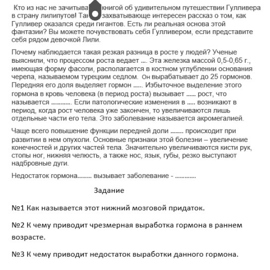 2)Чрезмерная выработка гормона гипофиза может привести к гигантизму