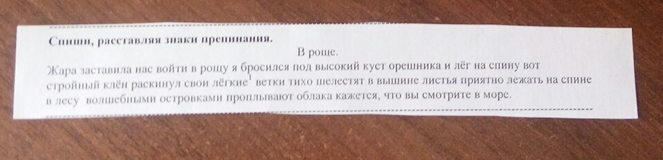Жара заставила нас войти в рощу.Я бросился под высокий куст орешника и лёг на спину.Вот стройный клён раскинул свои лёгкие ветки.Тихо шелестят в вышине листья.Приятно лежать на спине в лесу.Волшебными островками проплывают облака,кажется,что вы смотрите в море.