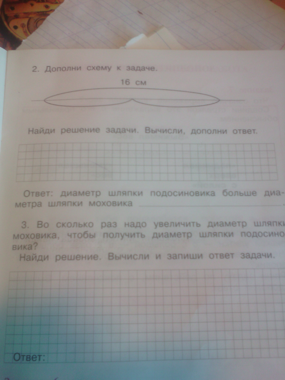 диаметр шляпки подосиновика 16 см, маховика - 8 см. На сколько диаметр шляпки подосиновика больше диаметра шляпки маховика?