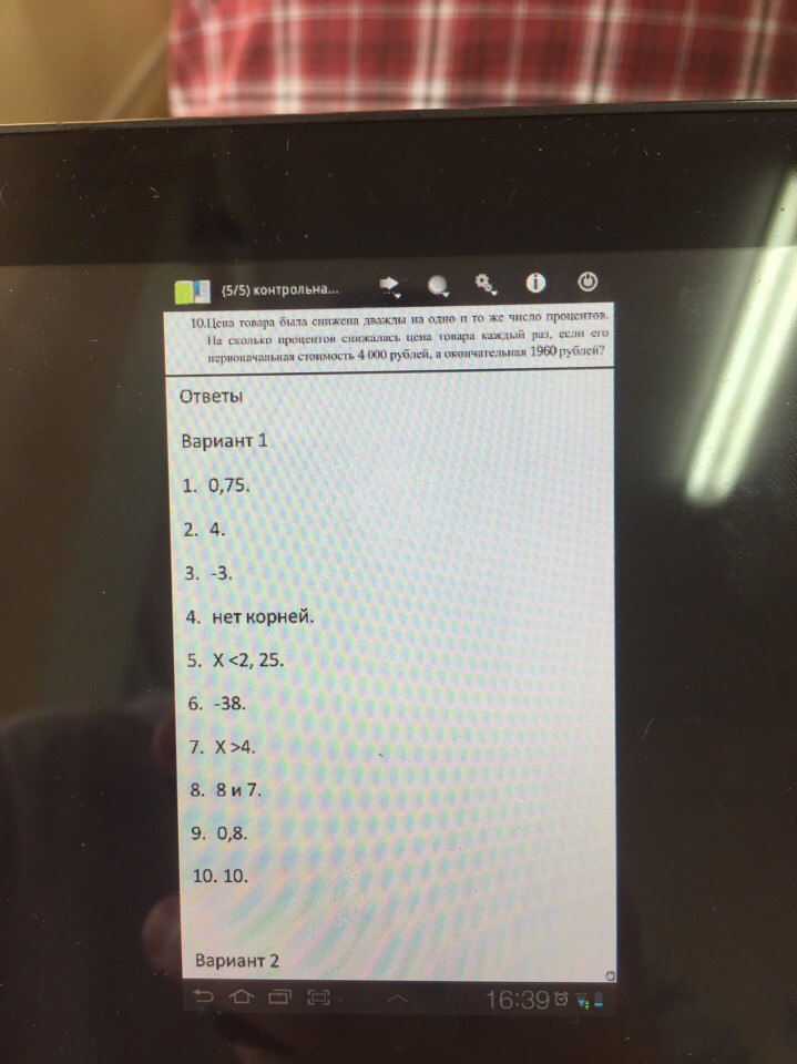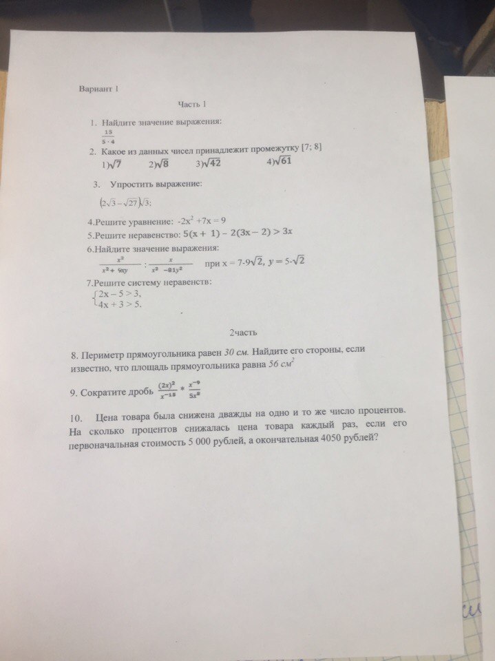 10. Цена товара была снижена дважды на одно и тоже число процентов. На сколько процентов цена товара снижалась каждый раз, если его первоначальная стоимость 5000 рублей, а окончательная 4050 рублей?