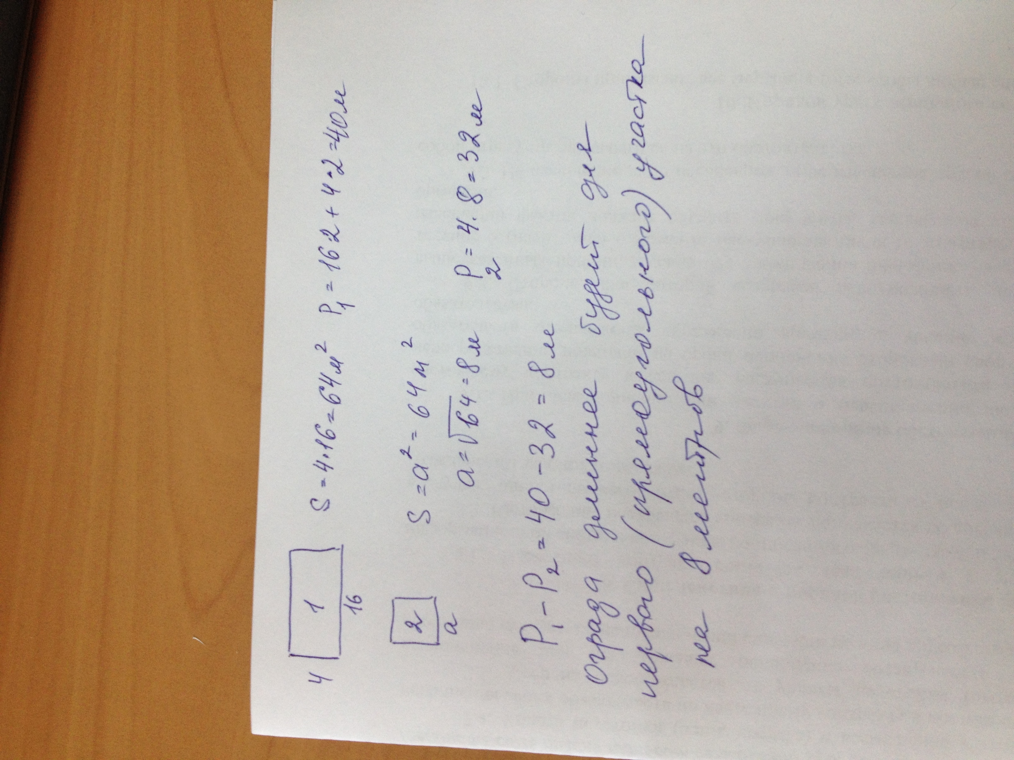 5.Дачник решил огородить два участка земли. Один участок прямоугольный размерами 16 м и 4 м а другой квадратный имеющий ту же площадь что и прямоугольный Для какого участка ограда будет длиннее и на сколько?