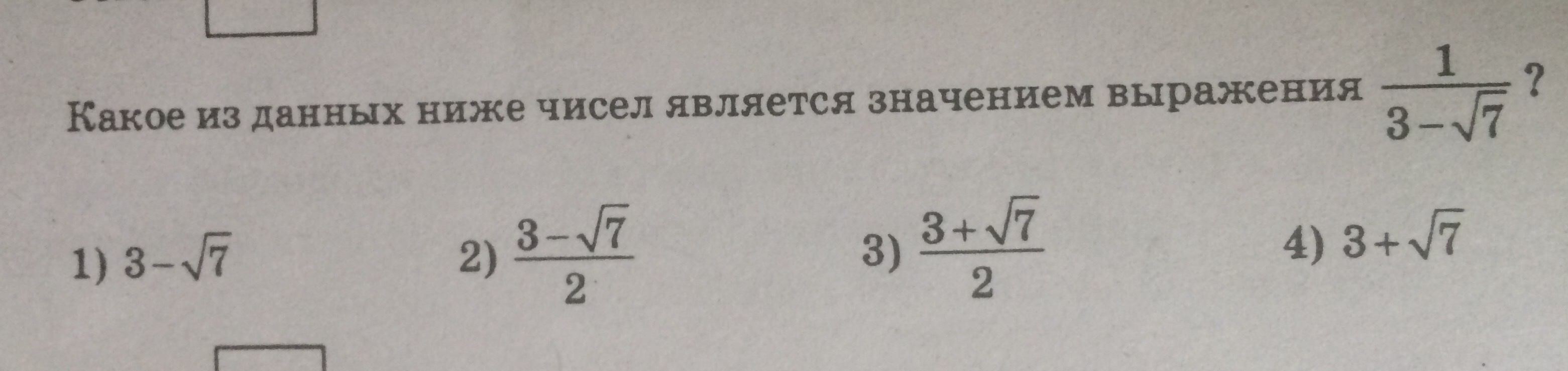 1 / (3 - √7)= ( 3 + √7) / ( 3 - √7)(3 + √7)=(3 +√7) / (9 -7)= (3 + √7) / 2