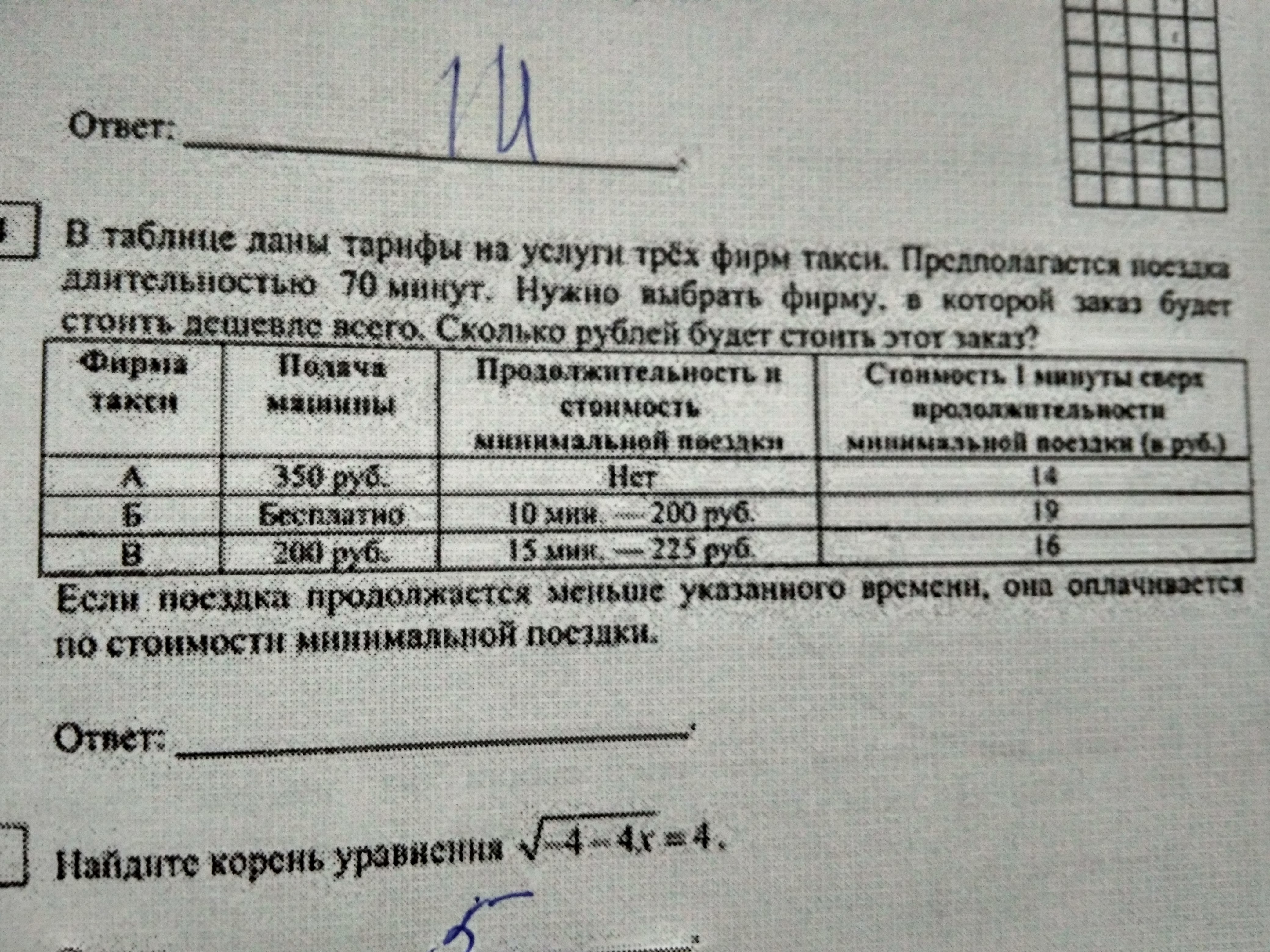 в таблице даны тарифы на услуги трех фирм такси. предполагается поездка длительностью 70 минут