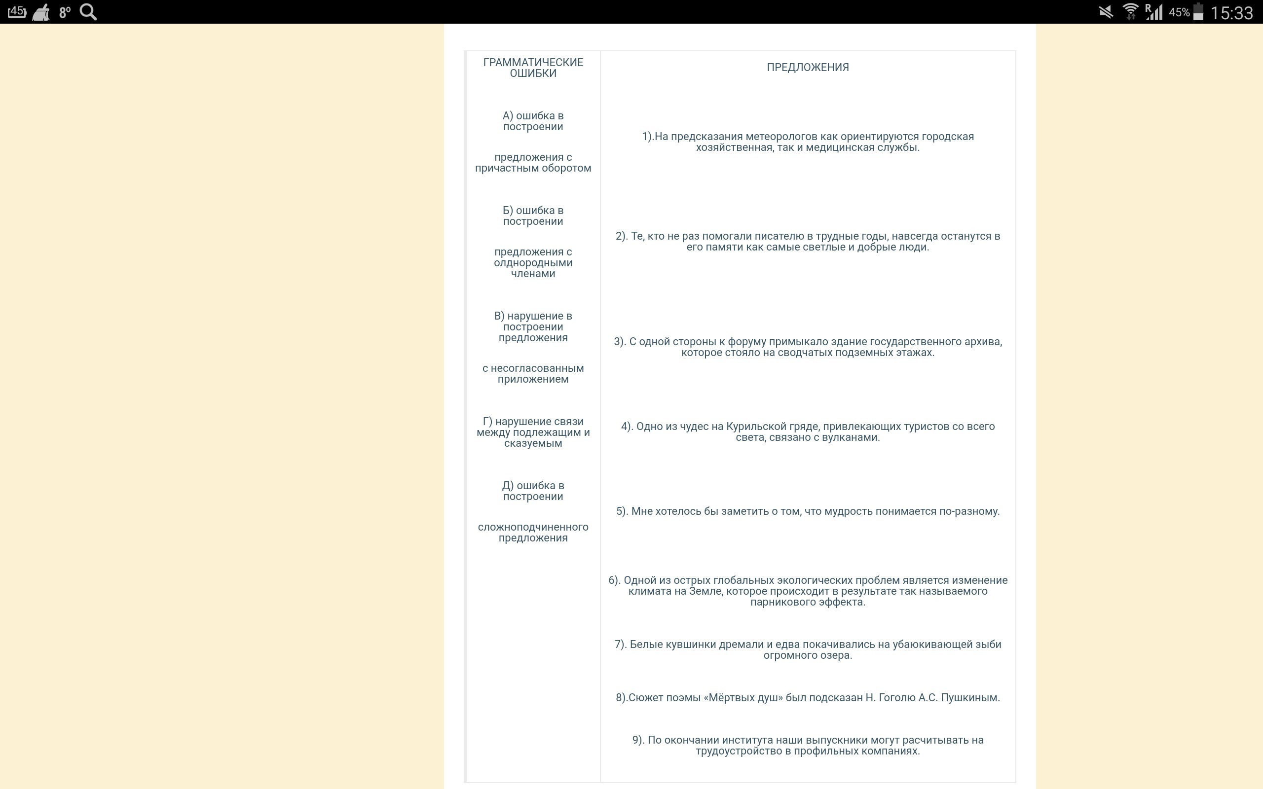 Установите соответствие между грамматическими ошибками и предложениями, в которых они допущены: к каждой позиции первого столбца подберите соответствующую позицию из второго столбца.
