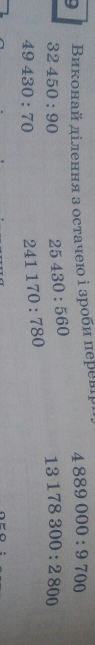 виконай ділення з остачеюі зроби перевірку 3245:90