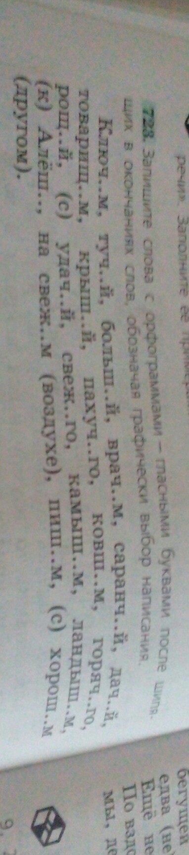 Ключом,тучей,Большой,врачом,саранчой,дачей,товарищем,крышей,пахучего,ковшом,горячего,рощей,с удачей,свежего,камышом,ландышем,к Алеше, на свежем воздухе,пишем,с хорошим другом.
