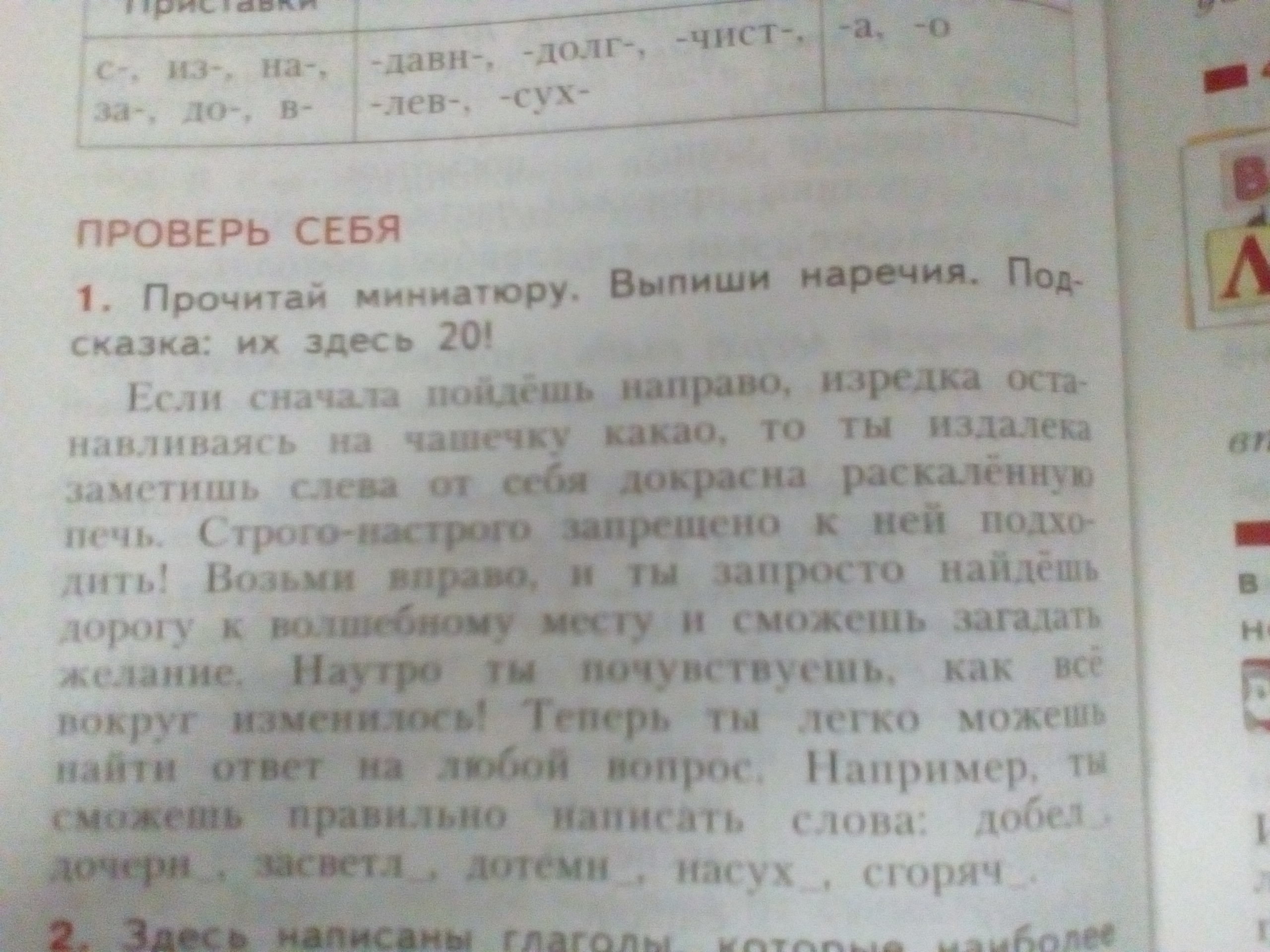 Сначала, направо, изредка, издалека, слева, строго-настрого, вправо, запросто, вокруг, легко, правильно, добела, дочерна, засветло, дотемна, насухо, сгоряча, докрасна.