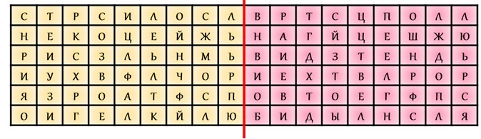 Разгадай головоломку. Найди в таблицах одинаковые буквы, которые расположены в одинаковых ячейках. Выпиши их, начиная с верхней строки, двигаясь слева направо. Составь из них название научного труда выдающегося русского естествоиспытателя. Определи автора этого труда. Запиши фамилию автора в ответе в именительном падеже единственного числа, без каких-либо знаков препинания.