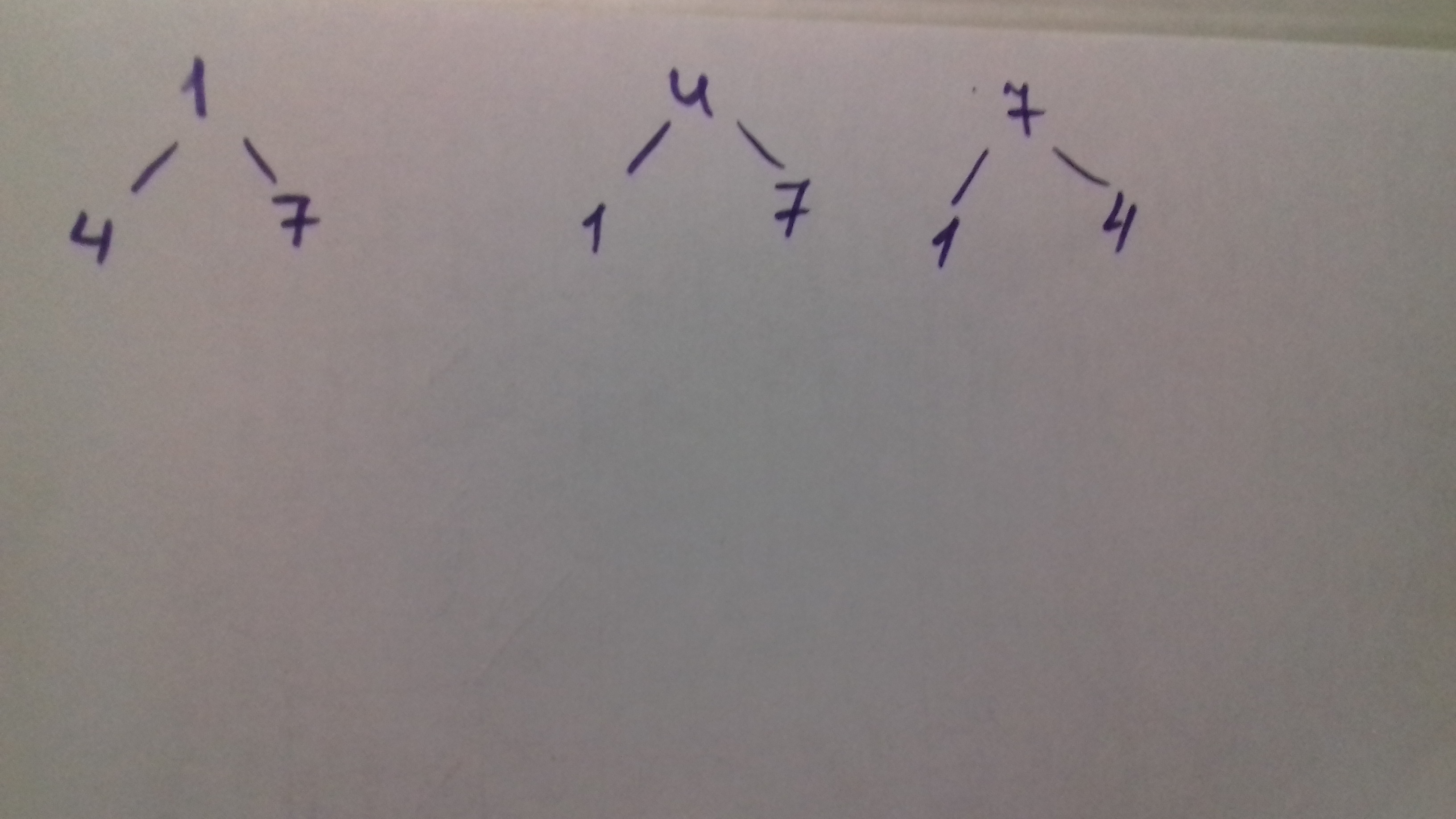 задача 5 класс: сколько двузначных чисел можно составить используя числа 1 ,4 ,7. Нарисуй дерево выбора на альбомном листе.
