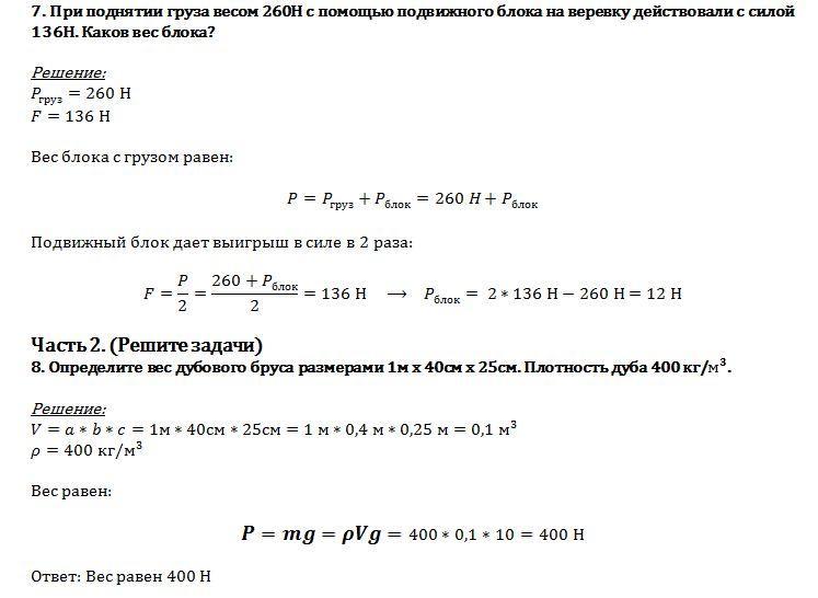 При поднятии груза весом 260Н с помощью подвижного блока на веревку действовали с силой 136Н. Каков вес блока?