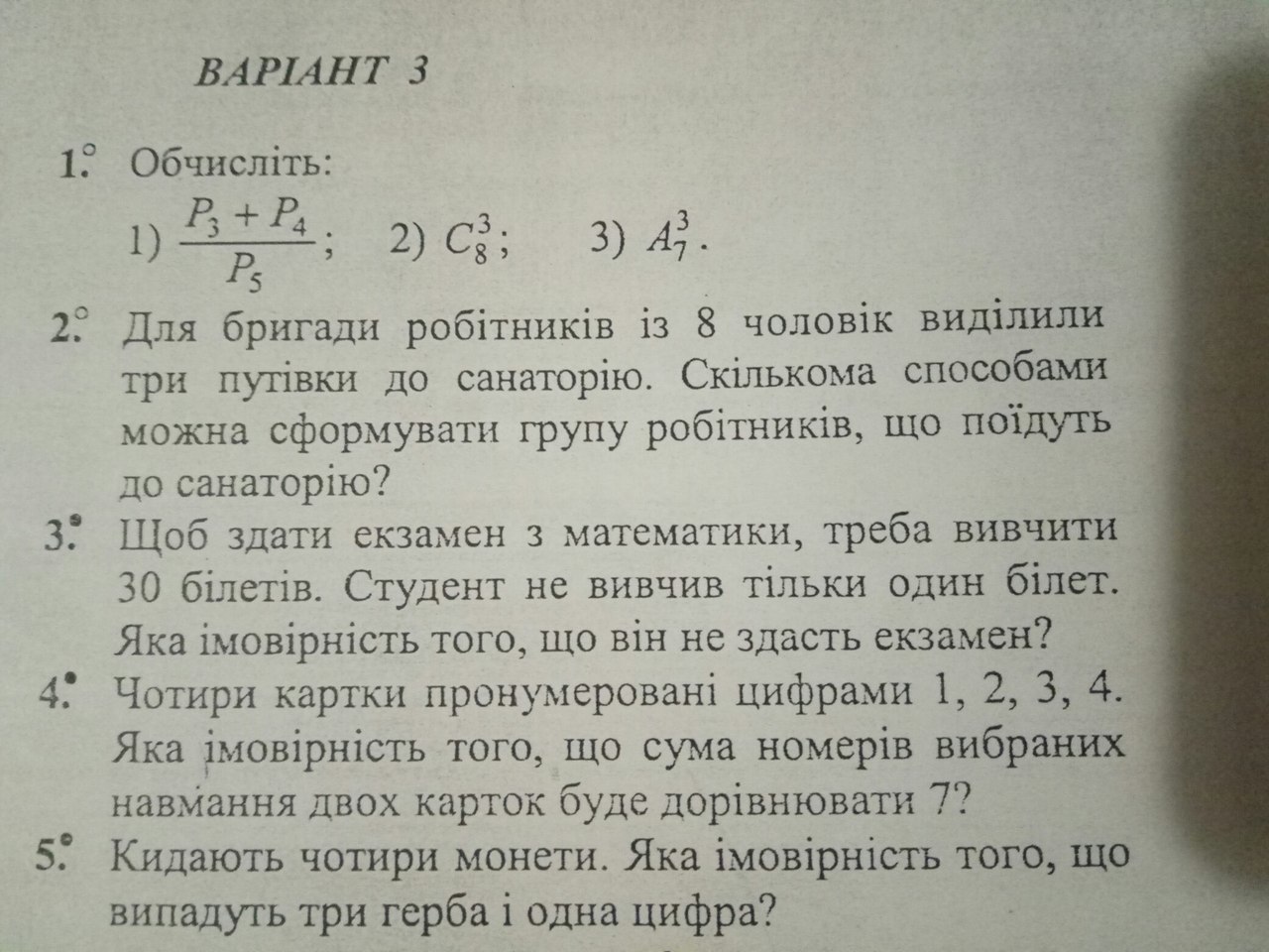 5. Существует 4 * 4 = 16 различных вариантов того, как выпадут монеты. Нужному событию благоприятствуют 4 из них: ОООР, РООО, ОРОО, ООРО. Значит, вероятность этого события равна 4/16 = 1/4 = 0,25.