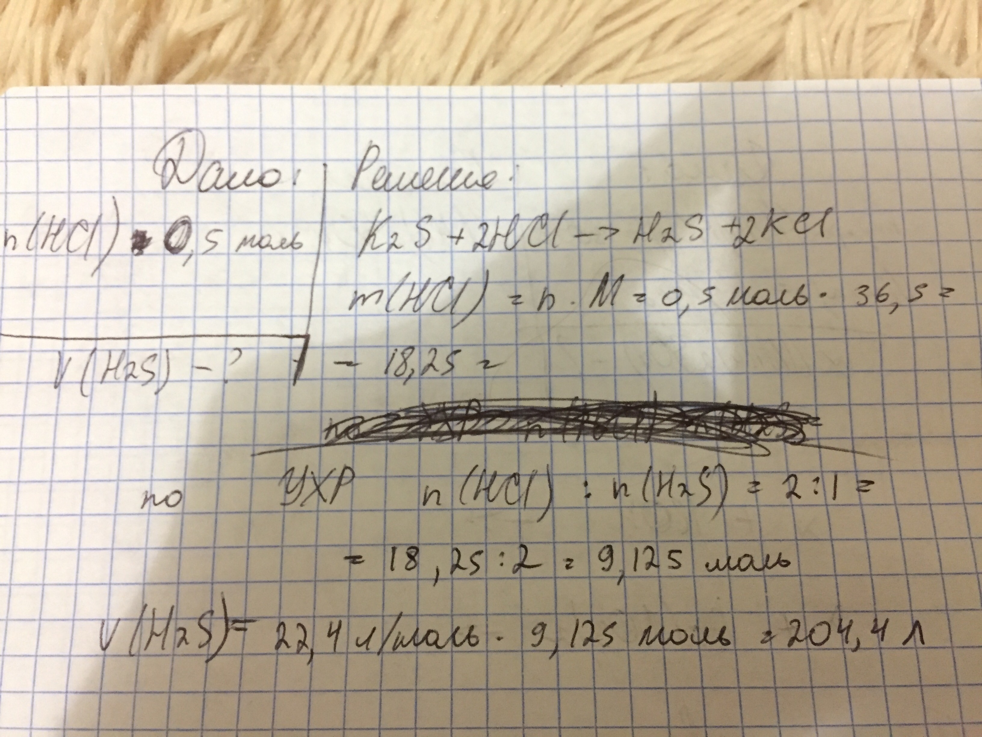 определите обьем сероводорода полученного при взаимодействии раствора сульфида калия и 0.5 моль соляной кислоты.