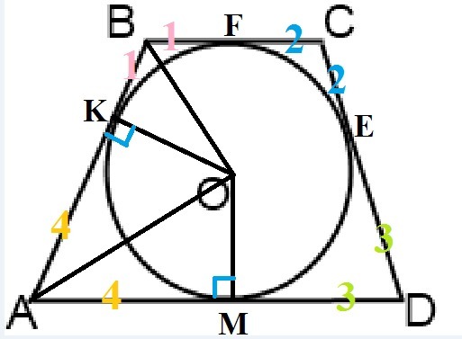 Пусть ABCD - трапеция, в которую вписана окружность с центром в т. О. Радиус окружности можно вычислить с помощью отрезков, на которые точка касания окружности делит боковую сторону трапеции.