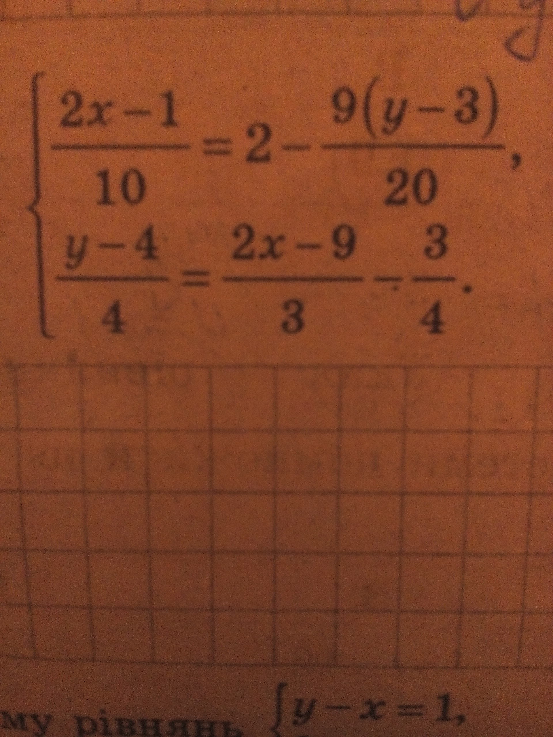 Первое уравнение умножим и правую и левую часть на 20 и сократим знаменатель (20/10=2)