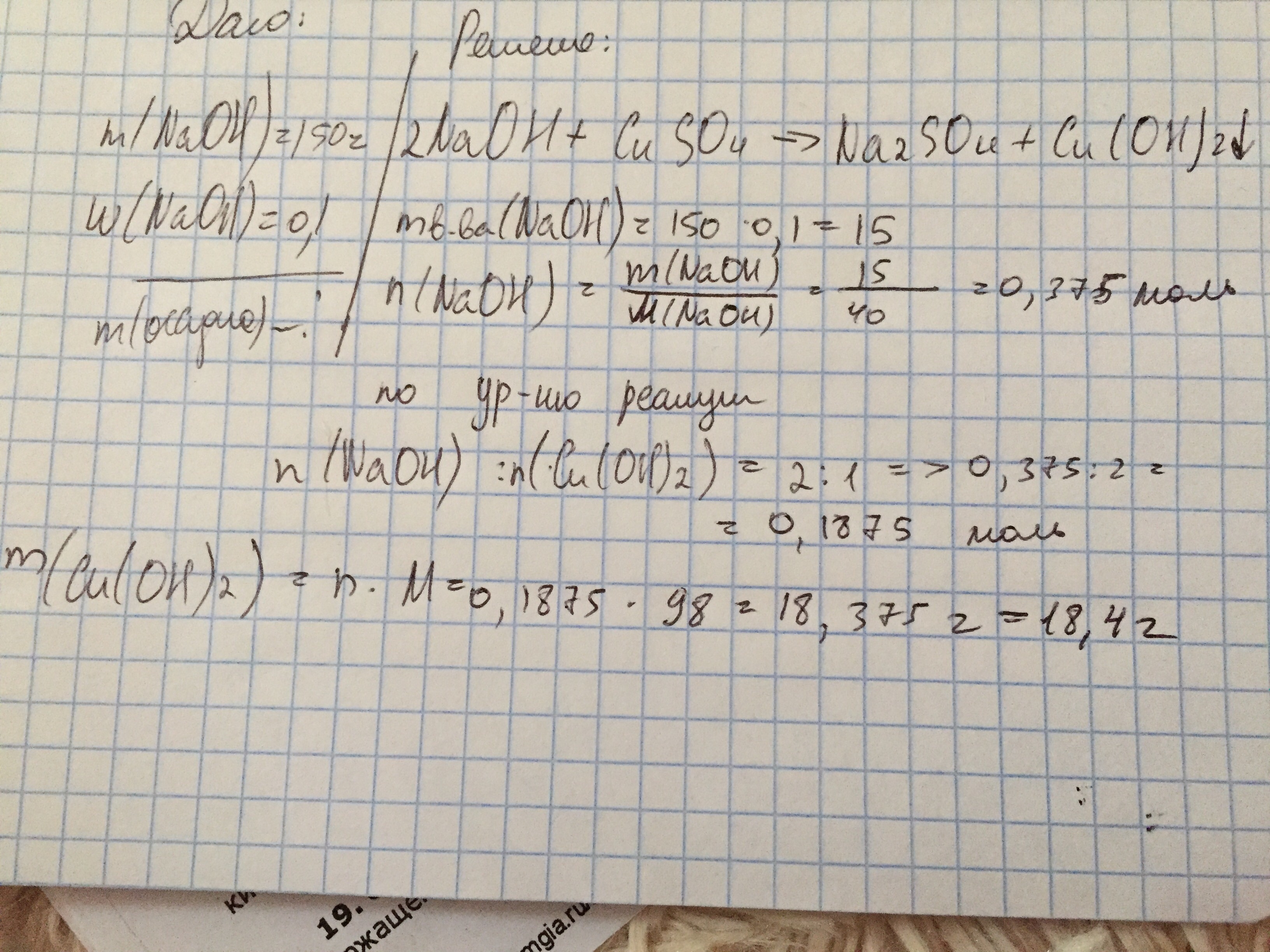 2)Вычислите массу осадка,полученного при сливании 150 г 10% раствора гидроксида натрия с раствором сульфата меди(2)