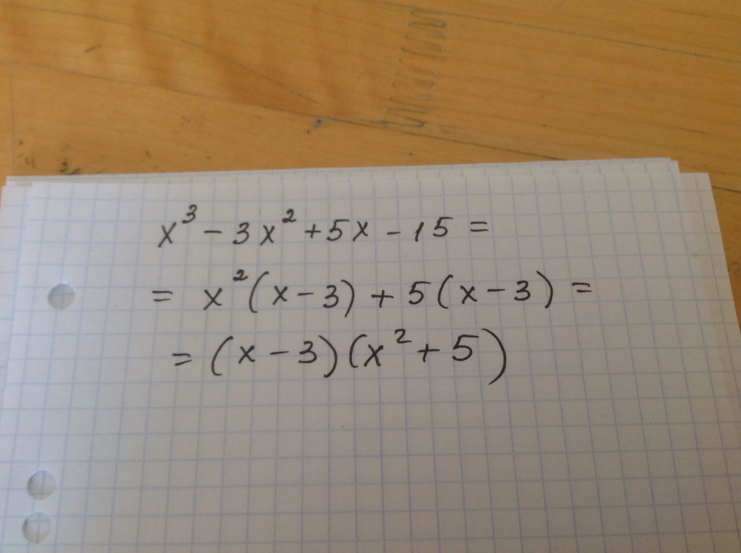 разложите на множители х^3-3x^2+5x-15. СРОЧНО, заранее спасибо