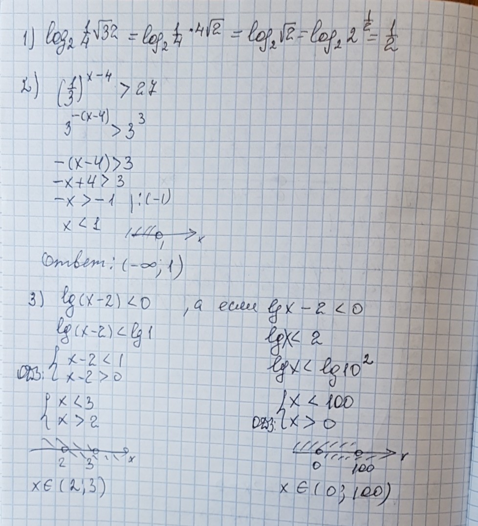 1) log2 1/4 корень 32