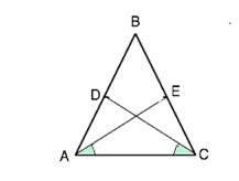 Вариант решения- доказать равенство треугольников АСD и АСЕ по общей стороне АС и двум прилежащим углам. Тогда при вычитании из равных сторон АВ и СВ равных отрезковостанутся равные BD и ВЕ