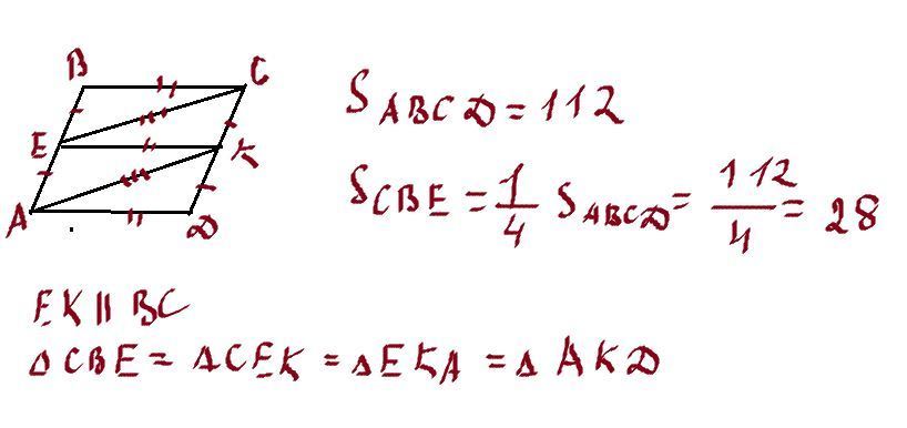 Смотри вложение SCBE=SABCD/4=112/4=28