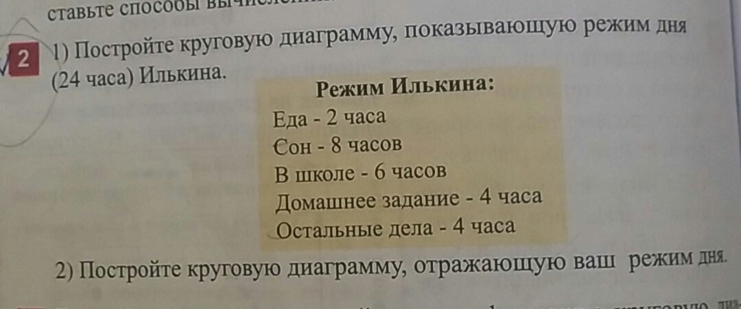 Еда - 2 часа, значит она будет занимать 2 сектора