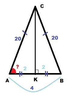 ΔABC : AC = BC = 20, AB = 4 - треугольник равнобедренный