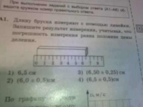 Длину бруска измеряют с помощью линейки.Запишите результат измерения, учитывая, что погрешность измерения равна половине цены деления.