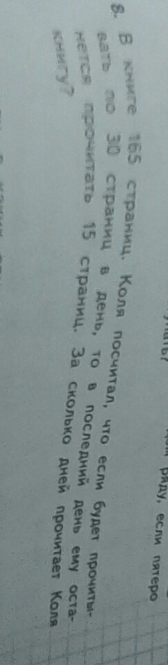 ( получается 5 дней Коля читает 30 страниц, а в последний день Коля прочитает 15 страниц , то есть половину от 30 )