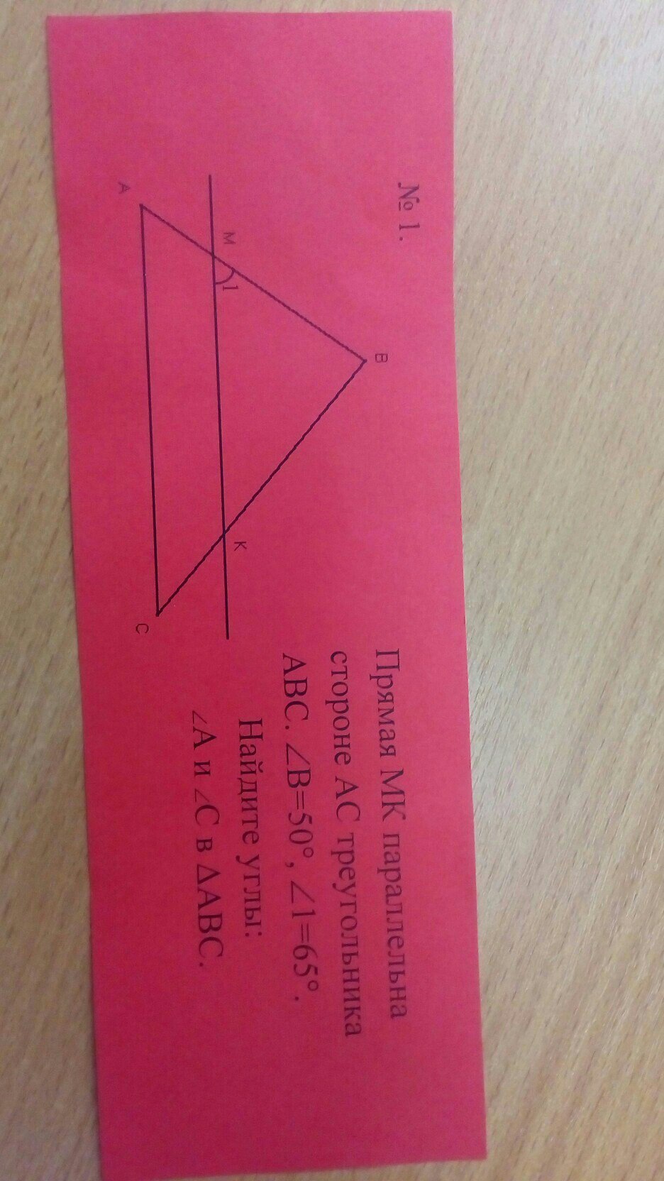 1. Так как сумма углов в любом треугольнике = 180 градусов, то угол ВКМ= 180-50-65= 65 градусов