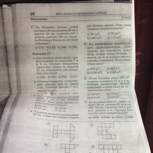6)S осн. = 25 * 4 = 100 м^2 - площадь основания =>H = 200 : 100 = 2 м - высотаР = 2 * (25+4) = 58 м - периметр =>S бок. = P * H = 58 * 2 = 116 м^2 - площадь стенS = S осн + S бок = 100 + 116 = 216 м^2