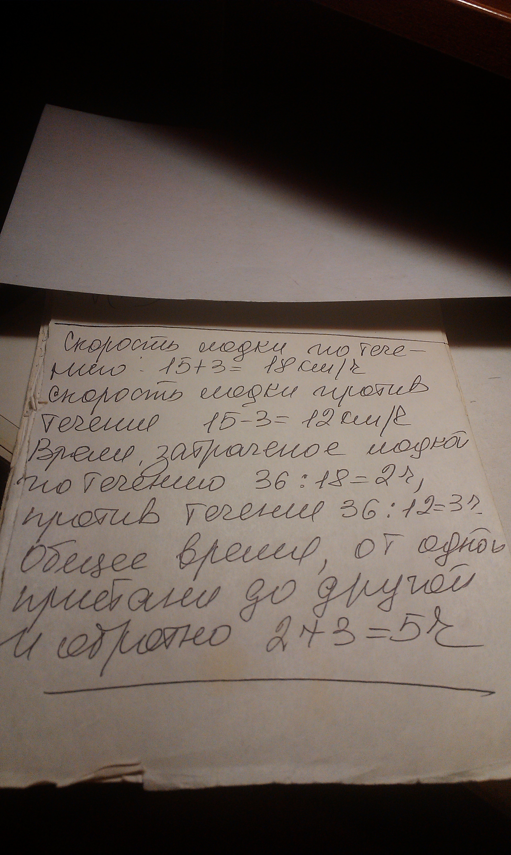 Скорость моторной лодки в стоячей воде 15 км в час а скорость течения реки 3 километров час Сколько времени потратит моторная лодка на движение от одной пристани до другой и обратно если расстояние между пристанями 36 км