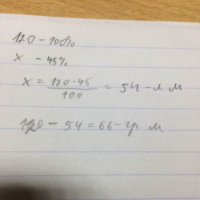 было всего 120 машин. легковых машин составляло 45%,а грузовые составляют остаток от легковых машин