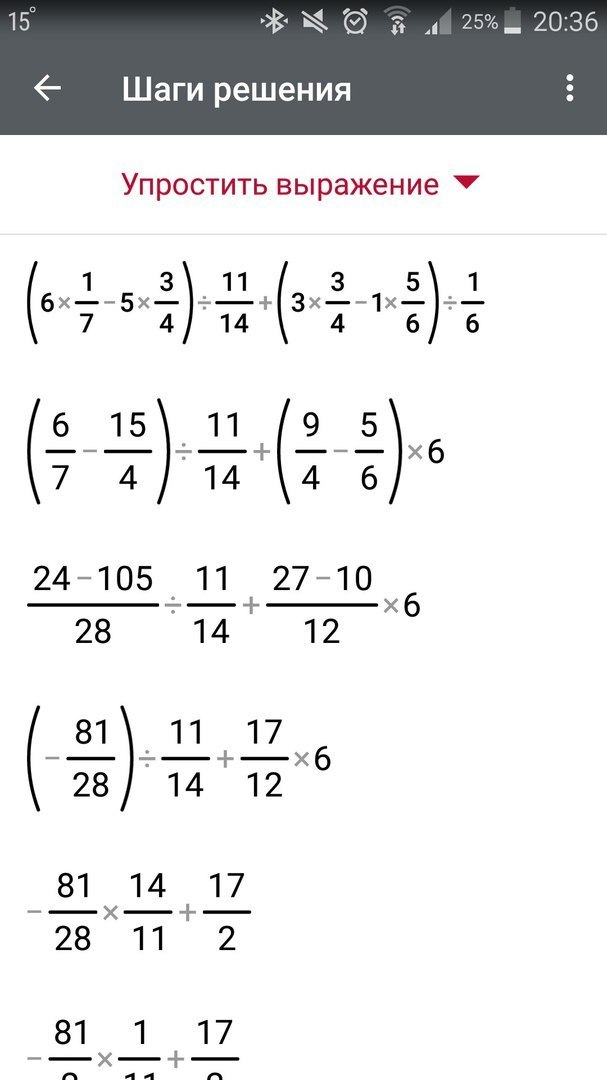 Решите по действиям: (6 1/7- 5 3/4) : 11/14+ (3 3/4- 1 5/6) : 1/6 (должно получится целое число)