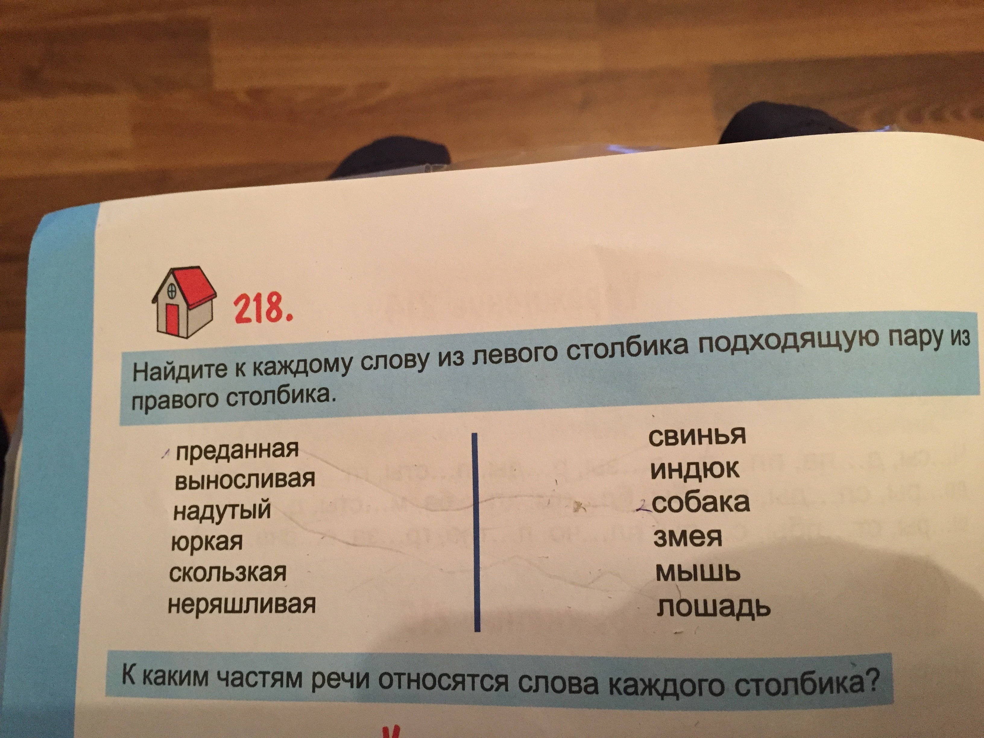 218) преданная собака, выносливая лошадь, надутый индюк, юркая мышь, скользкая змея, неряшливая свинья.