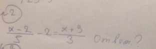 X-2/5 - 2 =X+3/3