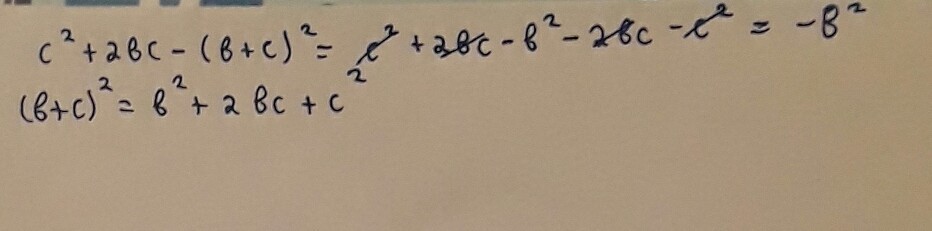 c^2+2bc-(b+c)^2=c^2+2bc-(b^2+2bc+c^2)=c^2+2bc-b^2-2bc-c^2=-b^2