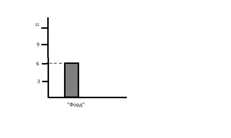На диаграмме показано количество автомобилей ''Форд'' в автосалоне. Известно, Что автомобилей Форд на 3 меньше, чем Субару и на 6 меньше чем Лада . постройте столбики , высота которых соответствует количеству автомобилей Субару и Лада. Сколько всего машин в авто салоне? Решите Пожалуйста!!1!!