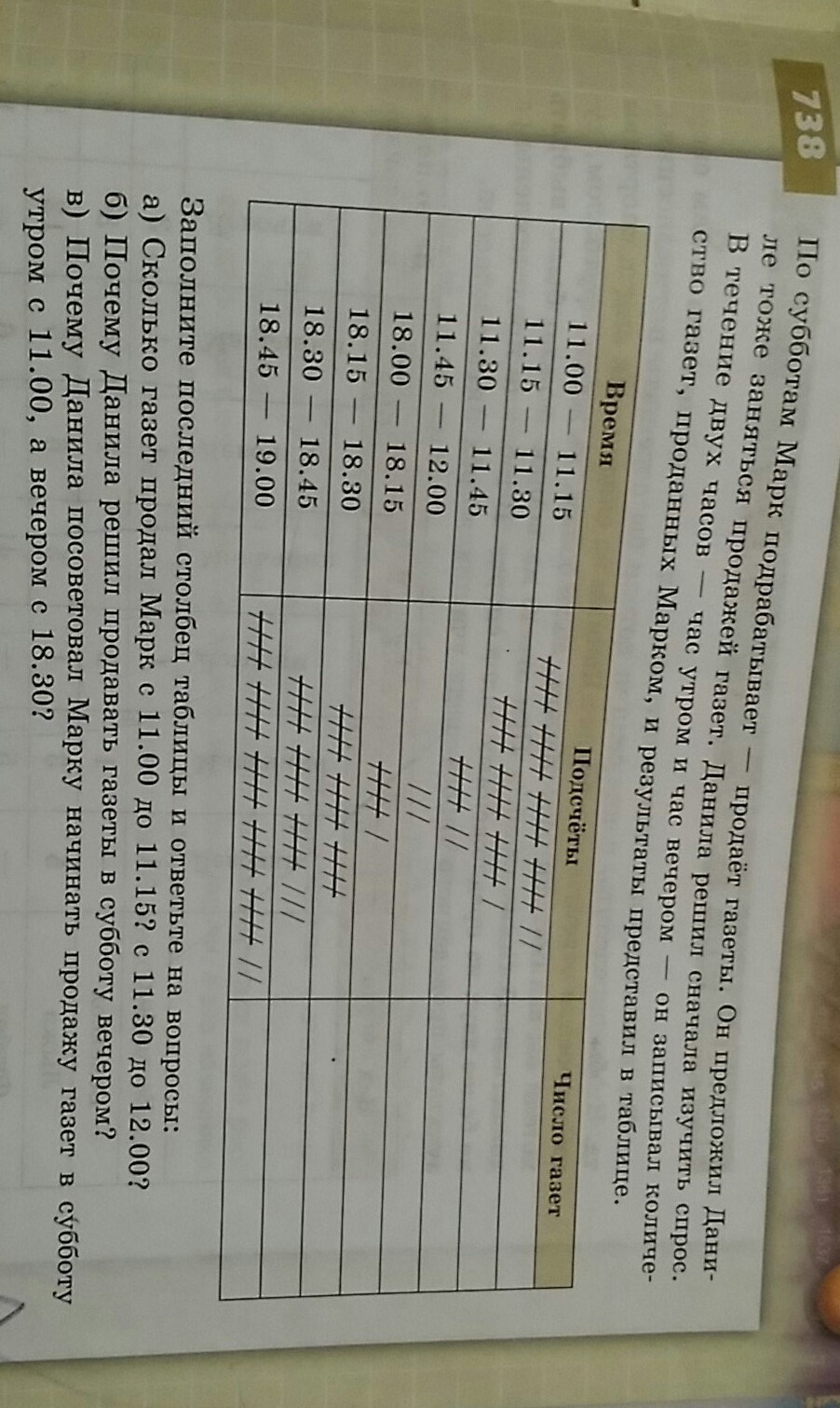 Б) Так как в субботний вечер Марк продал больше газет, чем за весь день (больше спрос на газеты);