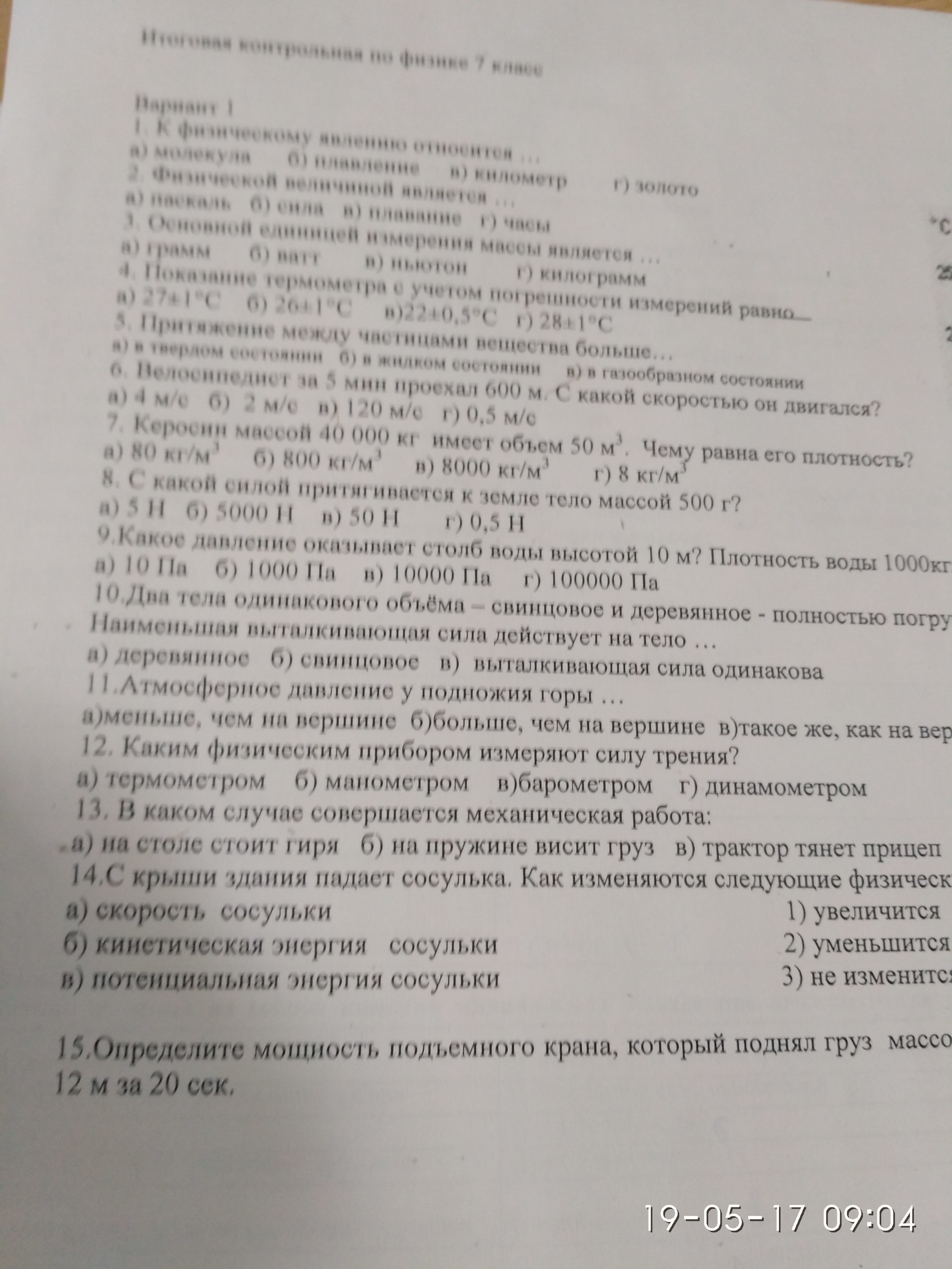 15) там массы нету так что додумывай сам N=mgh/t=m*10*12/20=???