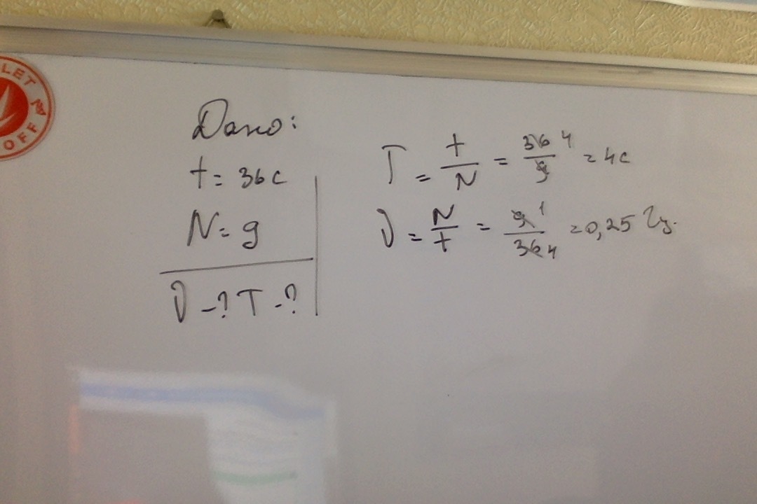 за 36 секунд маятник совершает 9 полных колебаний. Определите период и частоту колебаний маятника.