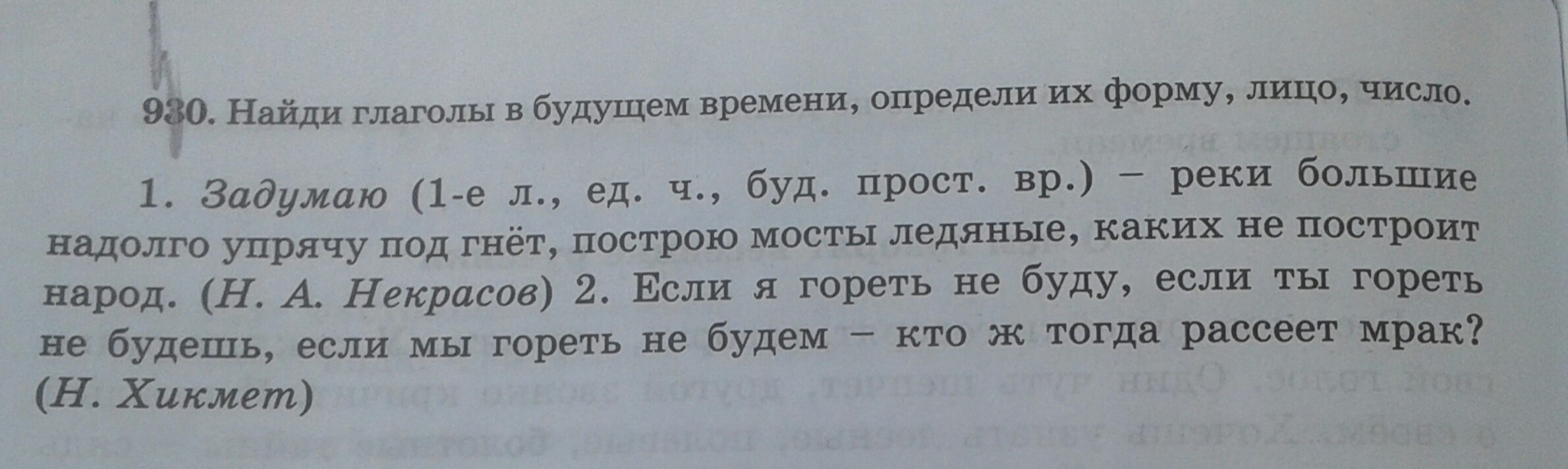 найди глаголы в будущем времени, определи их форму, лицо, число.