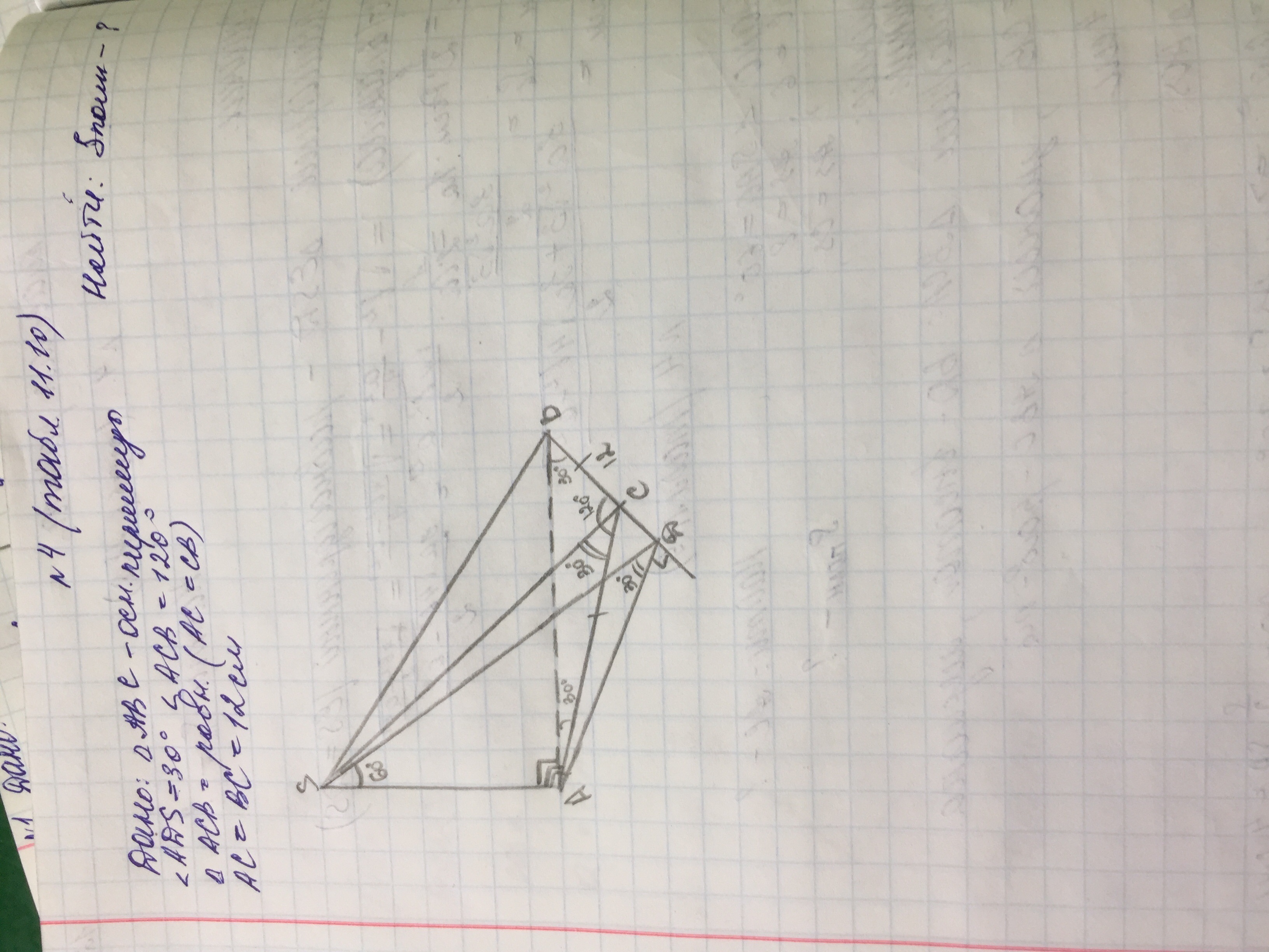 И высота. Ее ищем через треугольник ADS, в котором сторона |AD| = |AC|*sin(180-120) = 12*корень(3)/2 = 6*корень(3). |AS|/|AD| = tg(30) = 1/корень(3) или |AS| = |AD|/корень(3) = 6*корень(3)/корень(3) = 6