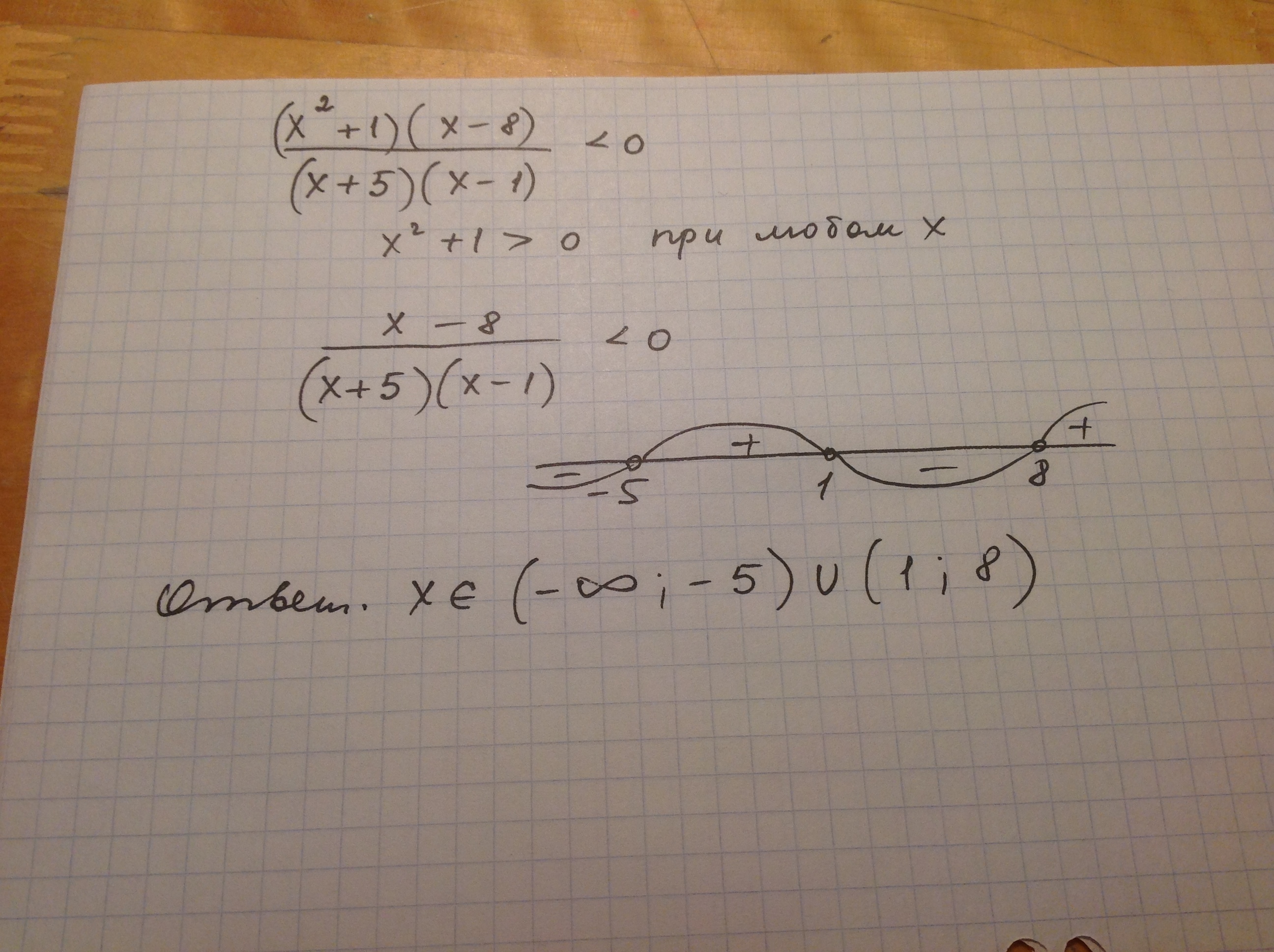 (х²+1 )(х-8) / (х+5)(х-1) < 0
