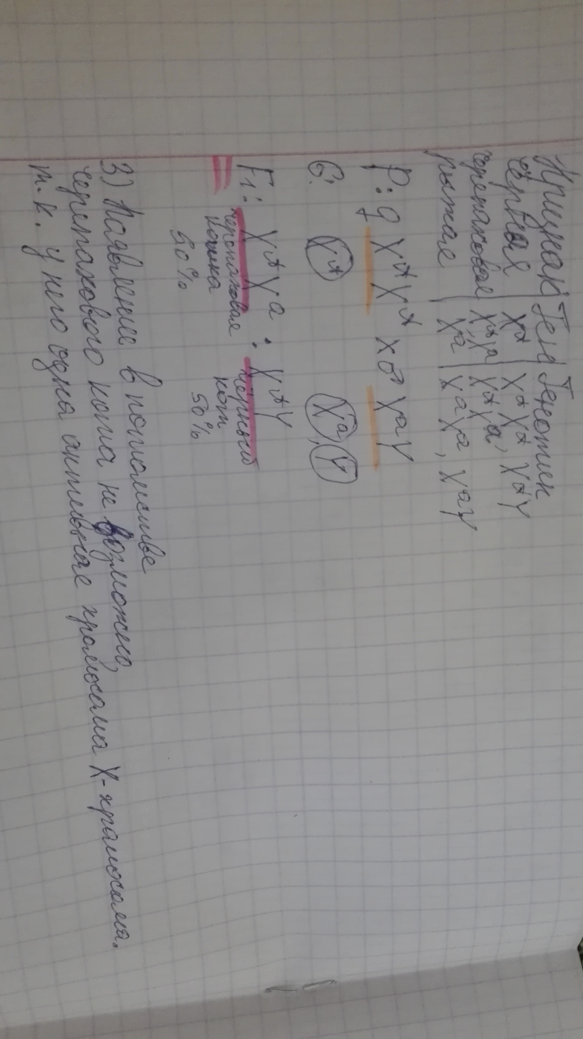 Оранжевый цвет-родители, розовый-потомки.