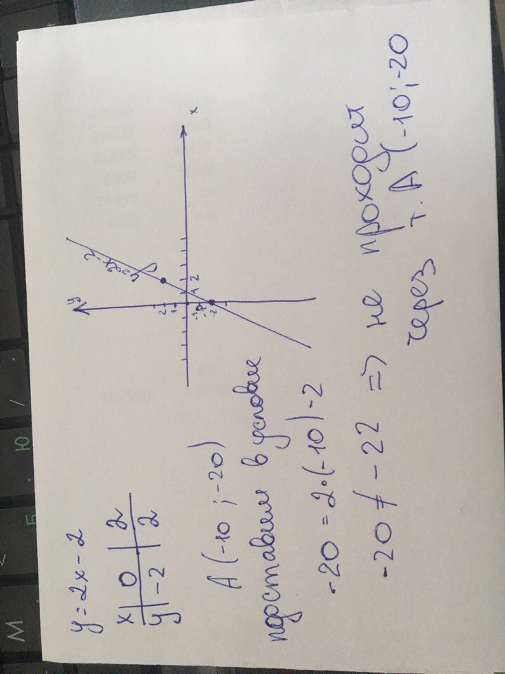 а)постройте график функции у=2х-2 . б)определите, проходит ли график функции через точку А (-10;-20)