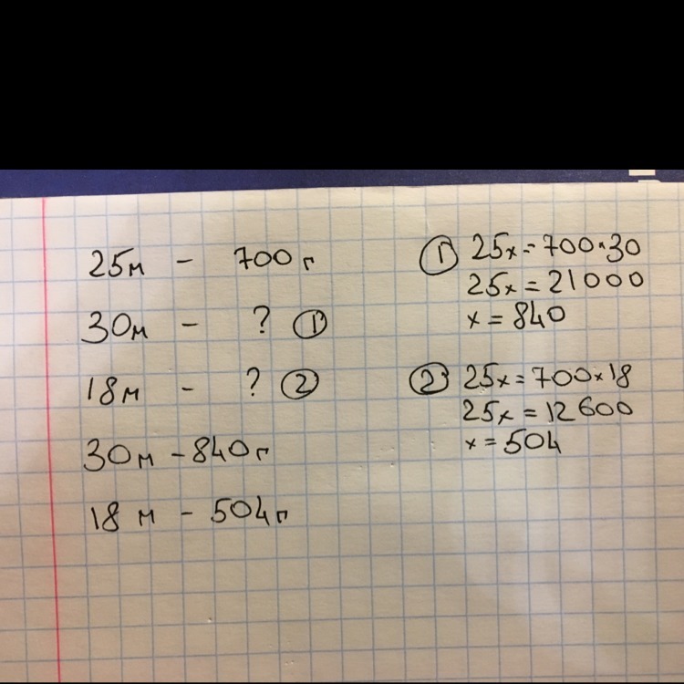 25 м проволоки весят 700 г. В одном куске 30 м проволоки,а в другом-18 м. Сколько весит каждый кусок?