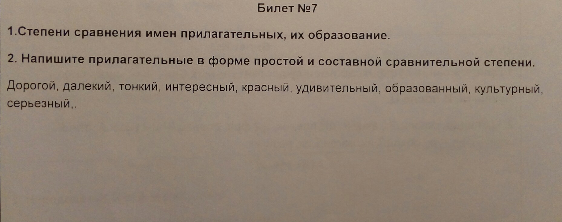дороже, более дорогой; дальше, самый далекий; краснее, самый красны; удивительнее, самый удивительный; образованнее, более образованный; культурнее, самый культурный; серьезнее, белее серьезный.