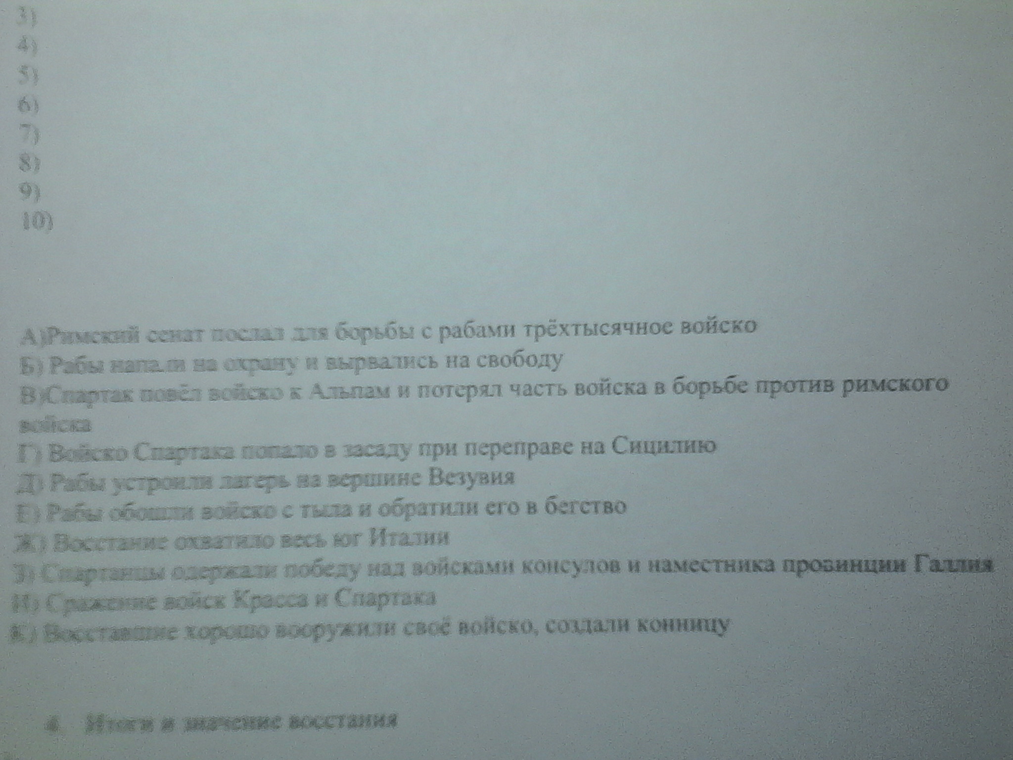 Даю 50б Восстание Спартака расставить события в правильном порядке
